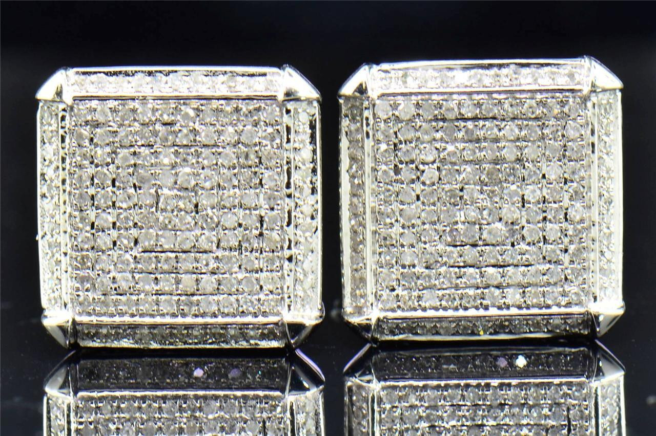 - Men's Ladies 10K White Gold Round Cut Diamond 3D Square Studs Earrings 0.80 Ct.