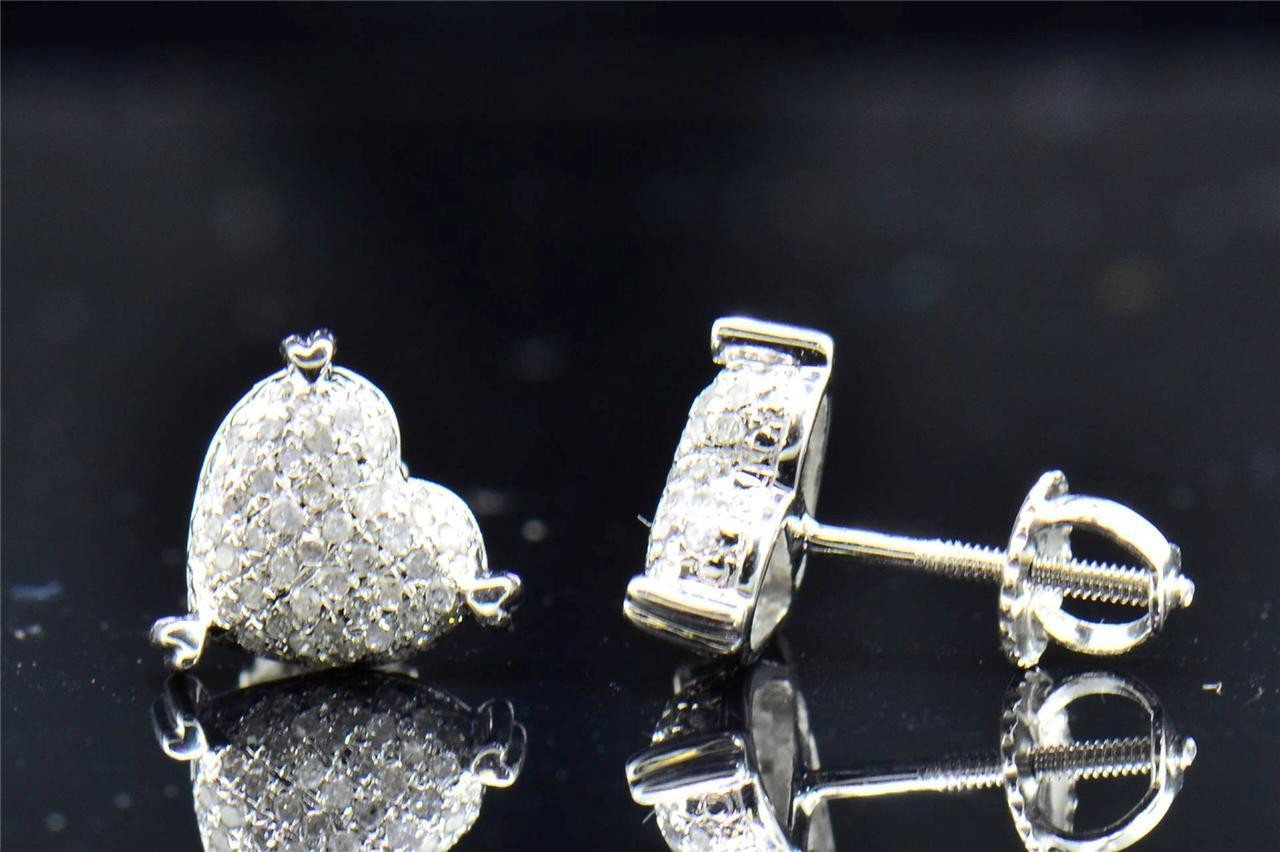 - Ladies 10K White Gold Round Cut Diamond 3D Heart Love Studs Earrings 0.32 Ct.