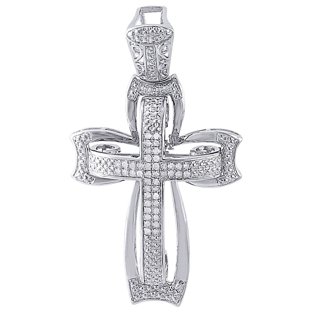 (6.7 grams of .925 Sterling Silver | 0.25 total carats of white diamonds | 1.95" long & 1.00" wide | I1 - I2 Clarity & H - I Color | Mens Diamond Domed Mini Cross Pendant Pave Setting Charm)