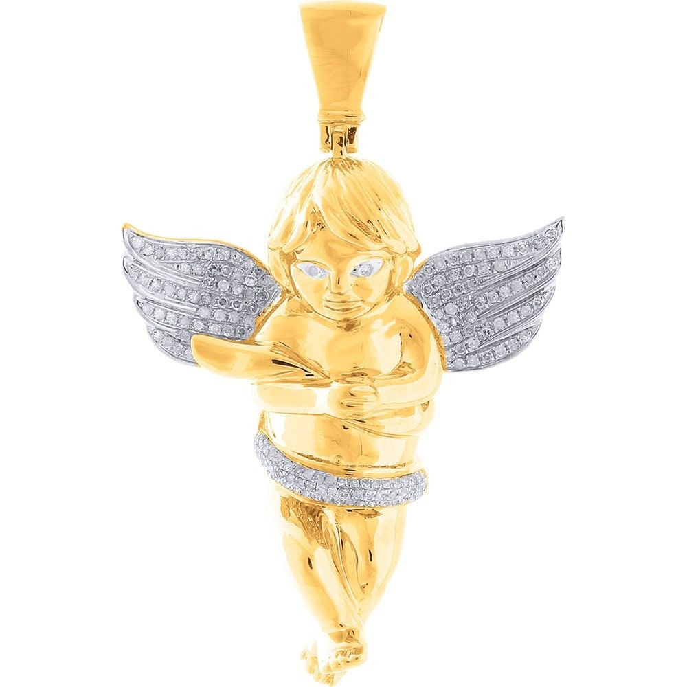 - Diamond Mini 3D Angel Pendant 10K Yellow Gold Round Cut Wings Charm 0.85 Ct.
