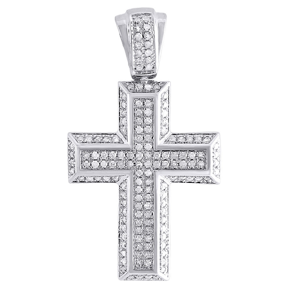 (2.9 grams of .925 Sterling Silver | 0.55 total carats of white diamonds | 1.34" long & 0.74" wide | I1 - I2 Clarity & H - I Color | Cross Diamond Pendant / Charm for Necklace)