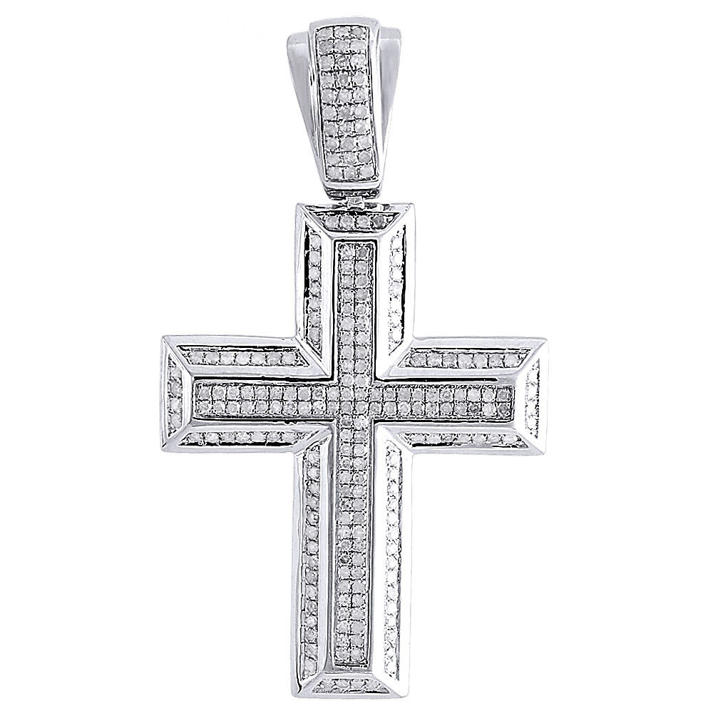 - Diamond Cross Pendant Mens .925 Sterling Silver Pave Religious Charm 1.10 Tcw.