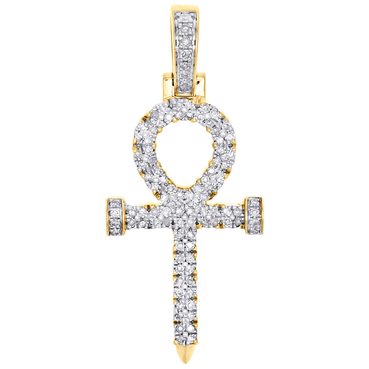 (3.4 gr. of 10K Yellow Gold | Total Carat Weight: 0.31 ct. t.w. of white diamonds | Length: 1.35" (including bail) | Width: 0.40" | Clarity: SI2 - I1 | Color: H - I | Men's Real Genuine Diamond Domed Nail / Ankh Cross Pendant Statement Pave Charm)