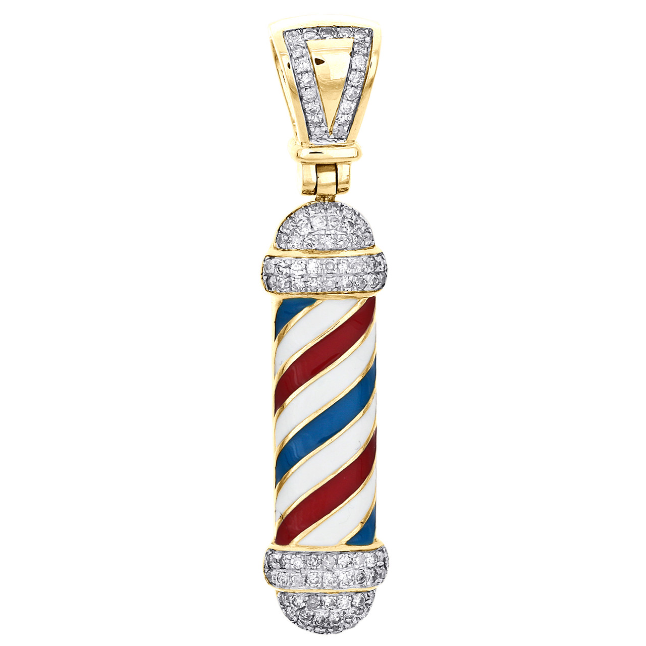 - 10K Yellow Gold Diamond Barber Shop Pole Pendant 1.80" Enamel Pave Charm 1/2 CT.