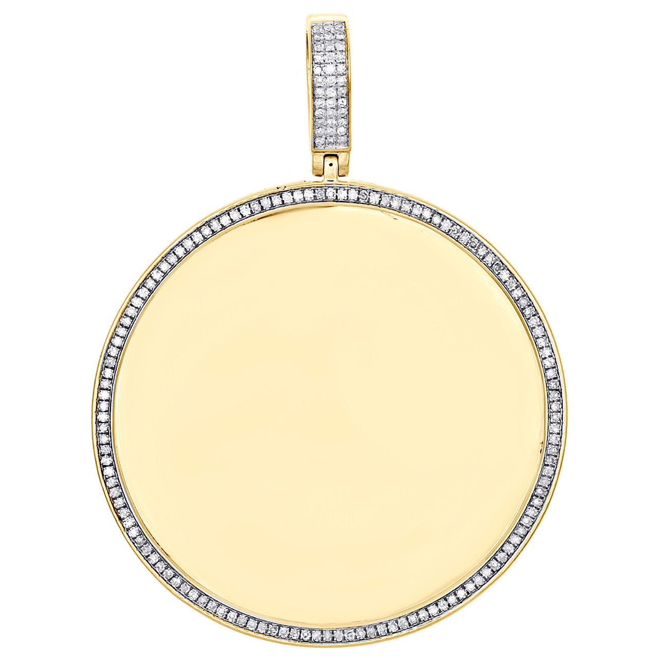 10K Yellow Gold Round Diamond Picture Memory Frame Pendant 2.35" Charm 0.62 CT.