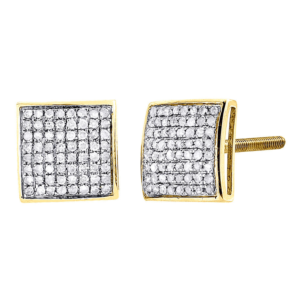 - Diamond Square Domed Studs 10K Yellow Gold Round Pave Fashion Earrings 0.30 Tcw.
