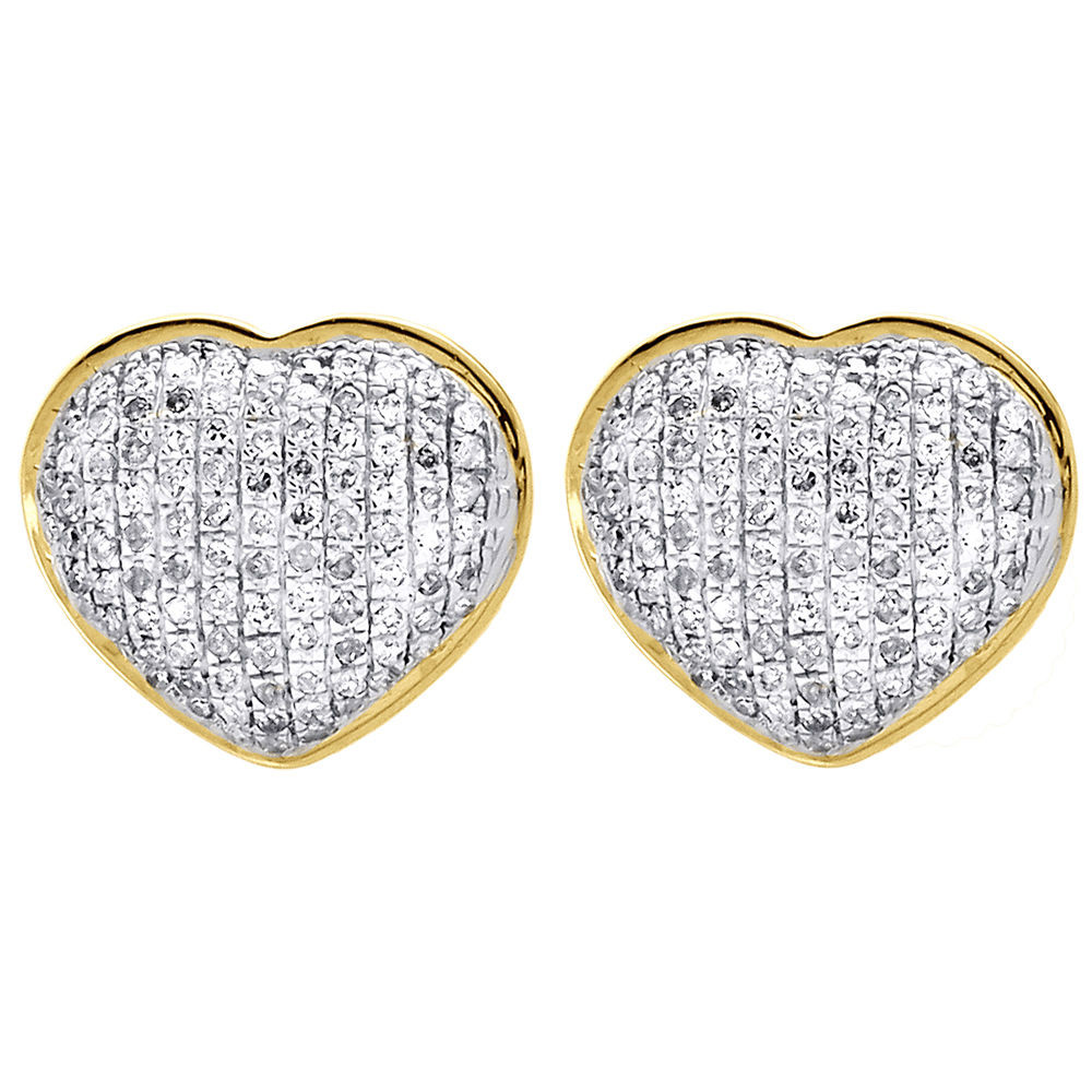 - Diamond Heart Earrings 14K Yellow Gold Round Cut Ladies Domed Studs 0.33 Tcw.