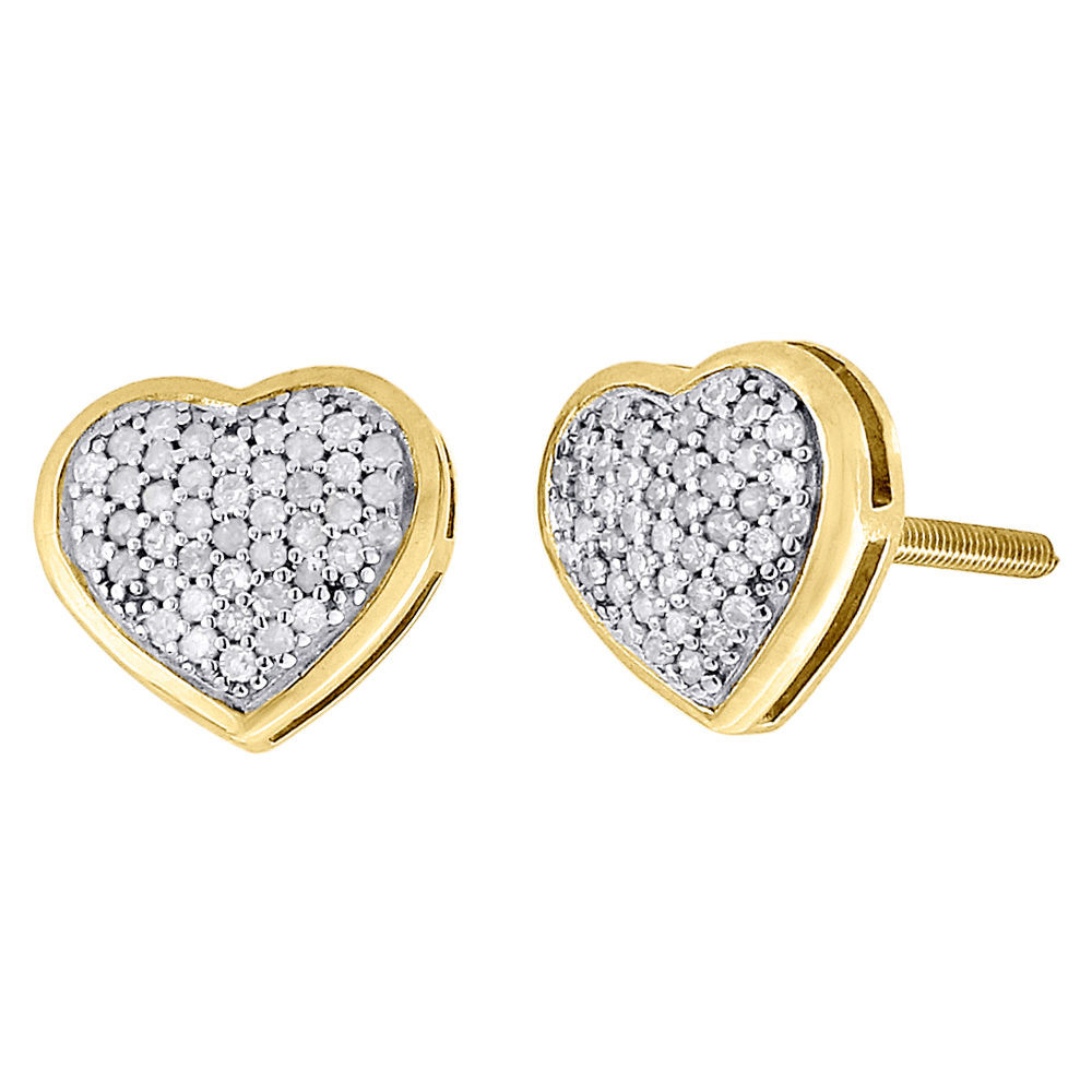 - Diamond Heart Studs 10K Yellow Gold Fashion Round Pave Design Earrings 0.30 Tcw.