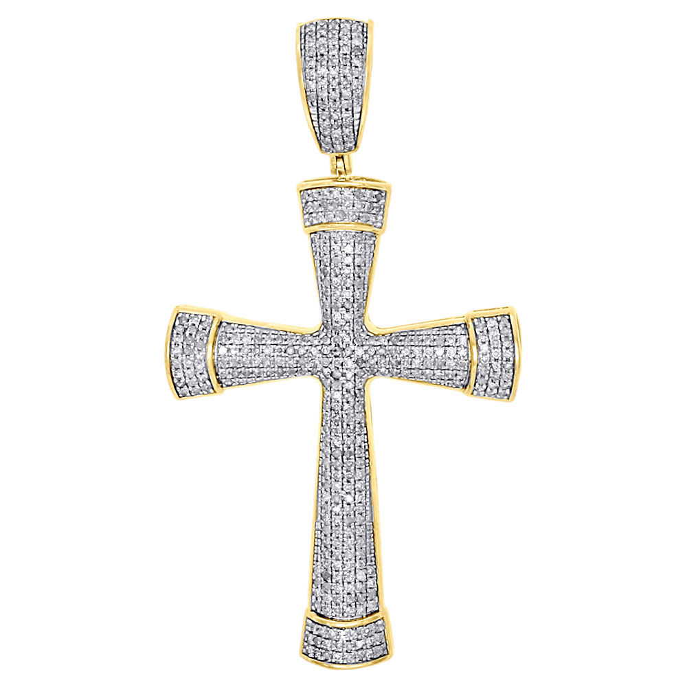 (7.1 grams of 10K Yellow Gold | 1.20 total carats of white diamonds | 2.20" long & 1.25" wide | SI2 - I1 Clarity & H - I Color | Mens Diamond Tube Style Cross Pendant Pave Setting Charm)