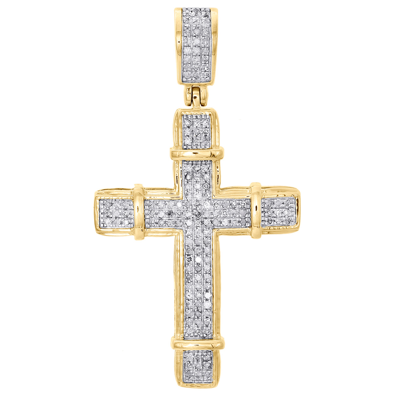 (3.5 gr. of 10K Yellow Gold | Total Carat Weight: 0.29 ct. t.w. of white diamonds | Length: 1.60" | Width: 0.85" | Clarity: I1 - I2 | Color: I - J | Unisex Real Genuine Round Diamond Religious Cross Pendant Pave Charm)