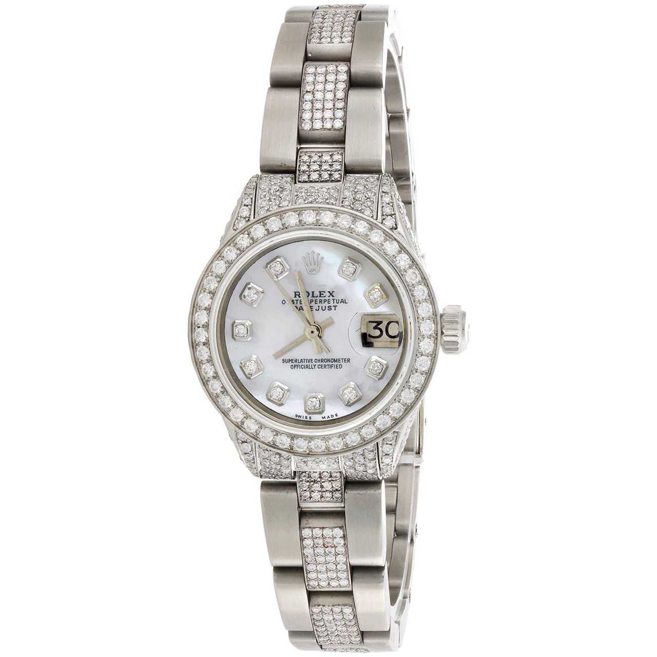 - Womens Diamond Rolex 69173 DateJust White MOP Dial Watch Oyster Custom Band 5 CT
