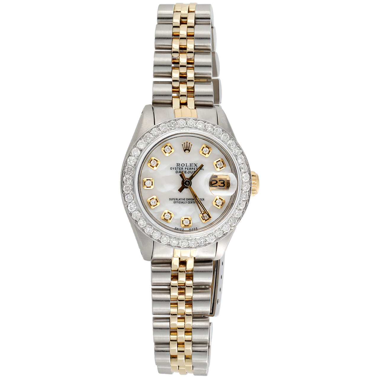 - Womens Rolex Diamond Watch MOP Dial 69173 Datejust 18K/ Steel Jubilee Band 1 CT.